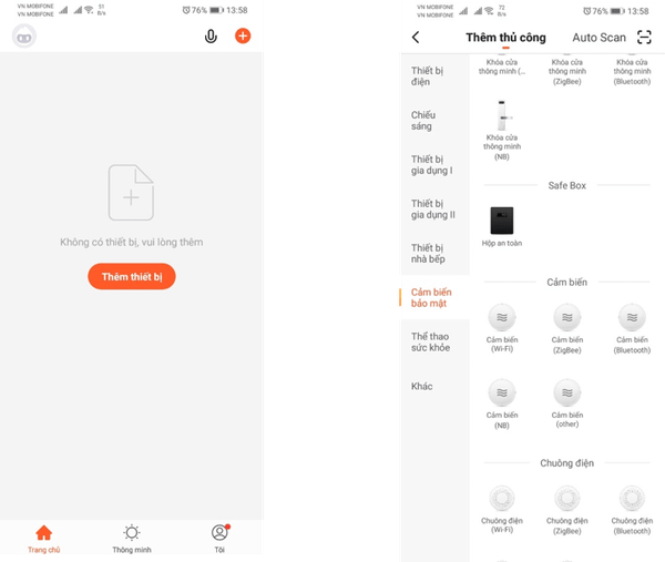 Đăng nhập tài khoản -> Thêm thiết bị -> Cảm biến bảo mật -> Cảm biến Wifi