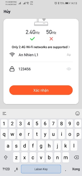 Xác nhận đèn báo nhấp nháy nhanh -> Nhập mật khẩu wifi -> Xác nhận ( chờ 1 chút để thiết bị kết nối) -> Hoàn tất.