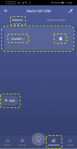 + Accessories -> Detector -> Add -> kích hoạt cảm biến không dây. Như vậy là bạn đã thêm thành công cảm biến không dây. Bạn có thể thêm tối đa 24 cảm biến không dây.