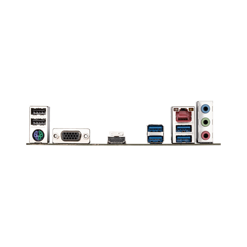 | Cổng kết nối (Back Panel) | 1 x PS/2 keyboard/mouse port 1 x D-Sub port 1 x HDMI port 4 x USB 3.2 Gen 1 ports 2 x USB 2.0/1.1 ports 1 x RJ-45 port 3 x audio jacks |